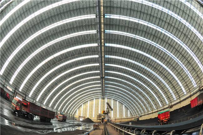 堆场料场封闭式主体结构为新型的钢额尔古纳网架结构,维修结构为额尔古纳钢结构额尔古纳不锈钢板和纤维增强塑料灯具,其外形以额尔古纳网架式和平板为主,连接柱额尔古纳施工自由,设置喷雾自动喷水系统,从而可以实现棚内所有物料的覆盖,减少物料在运输过程中的损耗,起到防尘的作用,减少工厂关闭后的二氧化硫排放量,50mg/m3颗粒排放量小于10mg/m3,非常适合低能耗。低闭库自动感应反应对库存轮胎进行清洁,确保轮胎不受道路污染;封闭的储存区可从源头控制粉尘污染,控制无序排放。